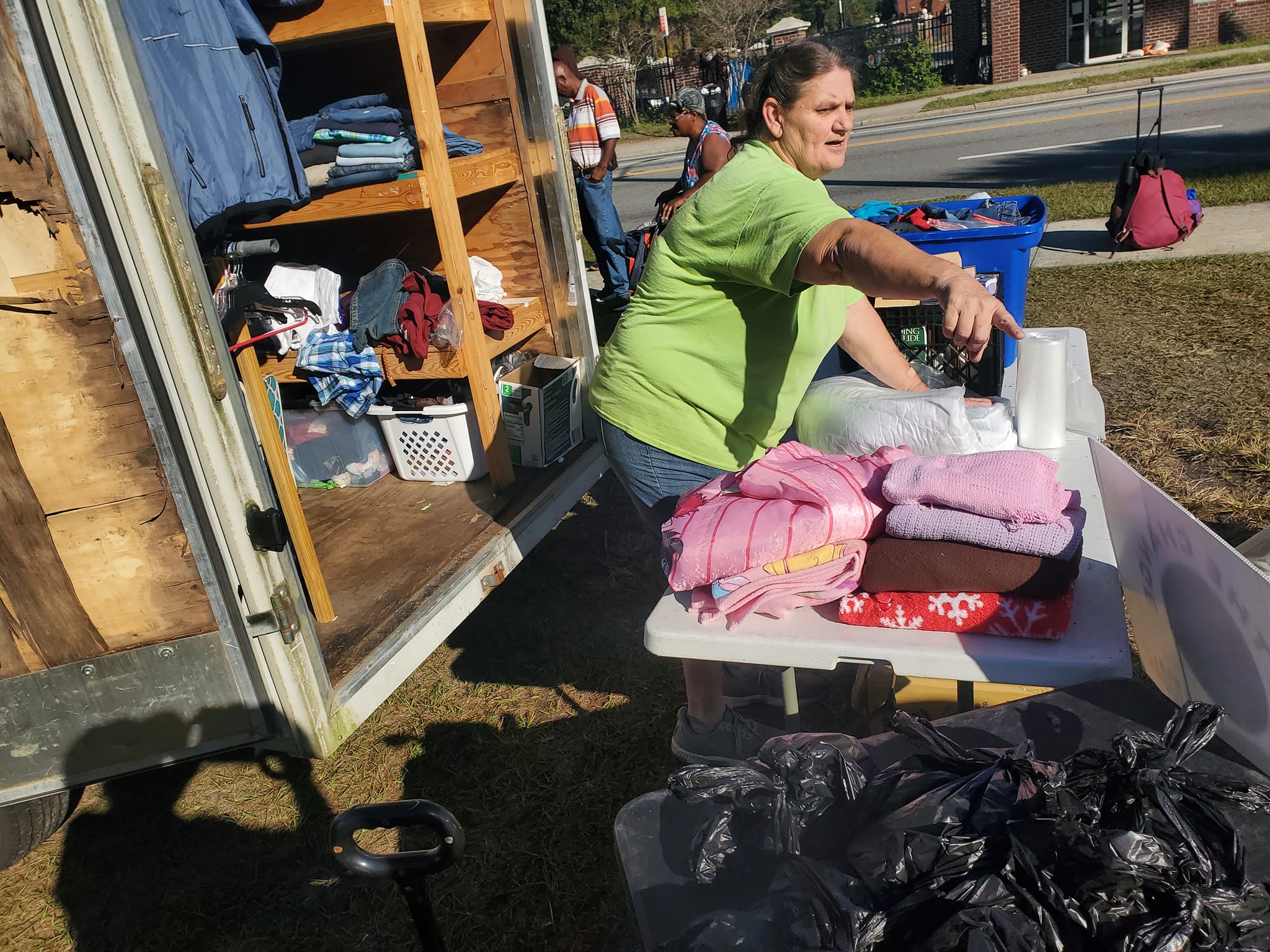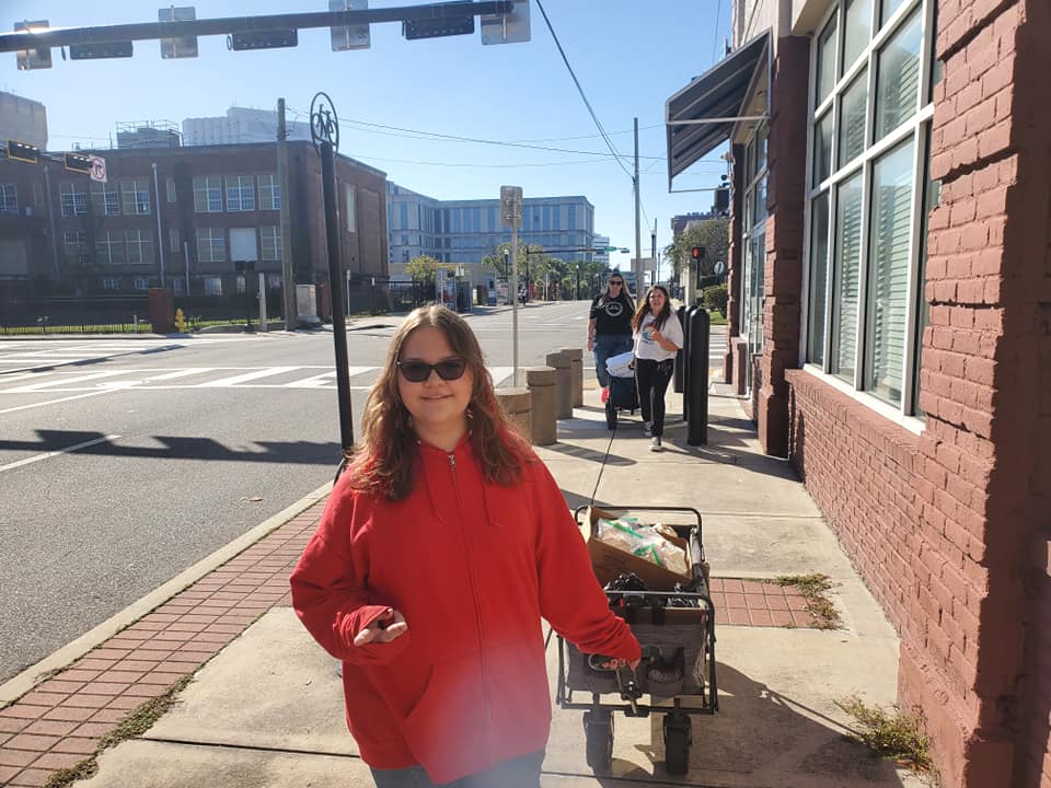 Once a month, our group of volunteers gather to bring food, clothing and supplies to the homeless population in downtown Jacksonville. We provide bagels donated by Panera, sandwiches made by a group of special ladies, bags with snacks and hygiene products and clothing as needed. People can place requests for specific clothing and our volunteers gather the requests we can fulfill and provide them on-site. We try to provide homeless supplies as we can to other locations at different times of the year. Watch our Facebook page for our current projects!